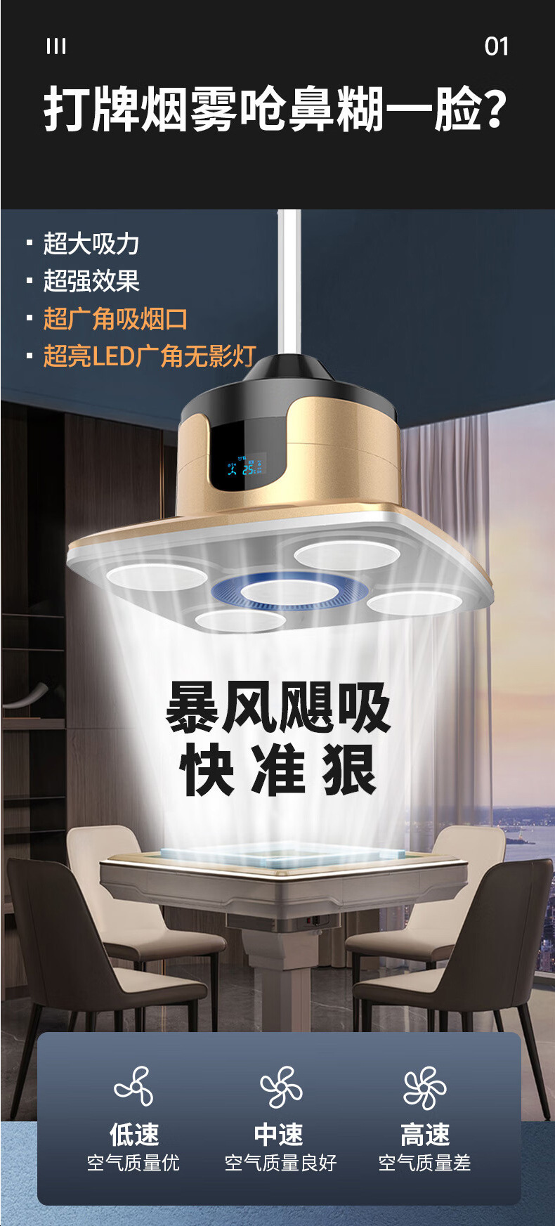 - 麻將室直排吸煙排煙凈化燈XP1