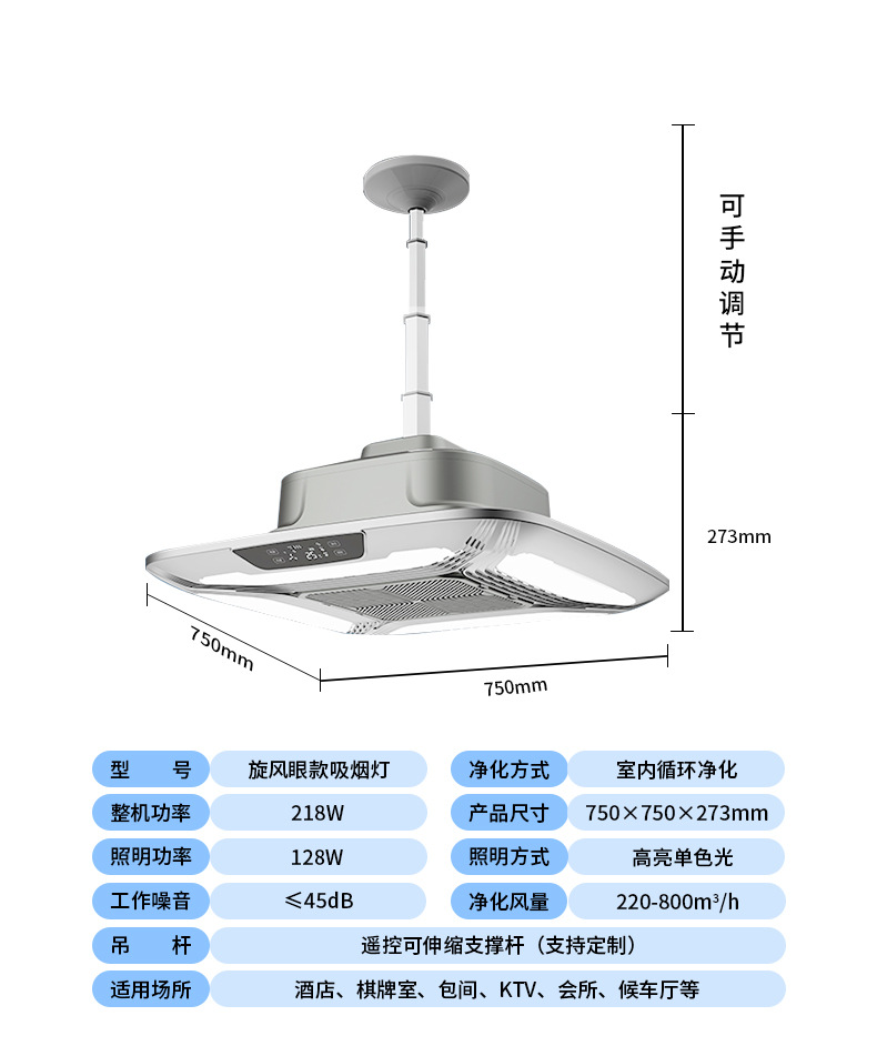 - 大燈遙控升降內(nèi)循環(huán)吸煙凈化燈588C